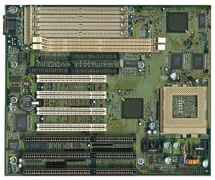 | This area of the mother board controls the voltage going to the processor and memmory it takes the 5 volts coming in from the power supply and regulates it down to between 2 and 5 volts depending on the CPU selected, and the memmory type installed. Most 486 DX2 (and newer) processors require the voltage to be 3.3 volts and lower. |